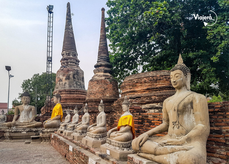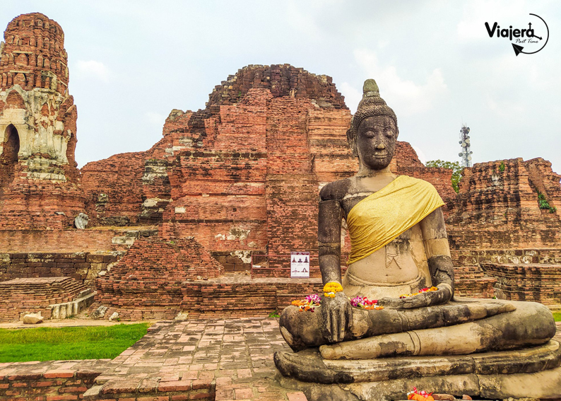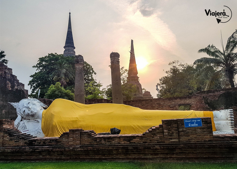 Este templo, auque uno de los principales, nosotros no lo llegamos a ver ya que nos confundimos y creímos que el Buda Reclinado que vimos en Wat Yai Chai Mongkhon era el de este templo. Sí ya sé, ¿cómo puede alguien confundir una estatua de 37 metros con otra de 7?, no tengo nada que decir en mi defensa, quizá solo que el sol de Ayutthaya nos nubló la mente jajaja. Pero para que no les pase les cuento mi experiencia, así ya saben que deben ir a buscar el buda reclinado más grande de Tailandia después del que está en Bangkok en el Wat Pho.