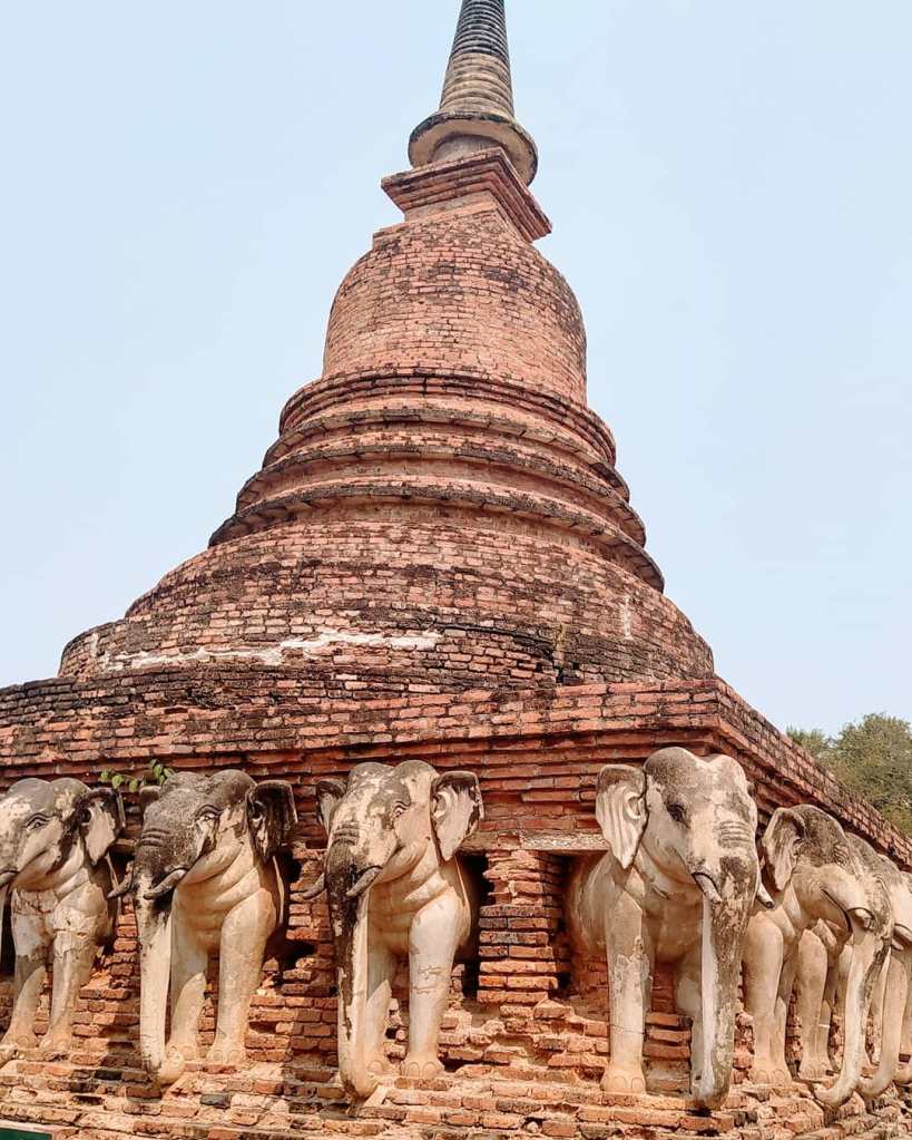 Lo más bello de este templo es la base de su estupa adornada con imágenes de elefantes gigantes a todo el rededor.