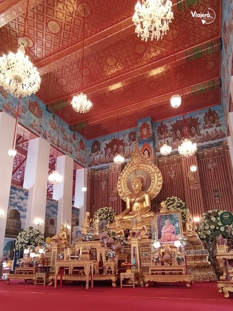 Este templo está ubicado justo iniciando o terminando (desde el punto de vista que lo veas) la calle Khao San. Este es uno de los templos más antiguos de la ciudad y aunque no es el más turístico es muy concurrido por los tailandeses de la zona, de todas maneras, entrar un momento te alejará un poquito del bullicio de la zona. Al ser mi primer templo no pude evitar emocionarme al ver al buda enorme en su interior y a los locales que devotamente rezaban arrodillados antes él. La arquitectura de este templo les podrá dar una idea clara de lo que verán en los siguientes días.