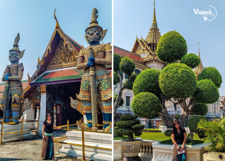 El Gran Palacio es, a mi parecer, lo mejor para ver en Bangkok. Les demandará toda la mañana ver los diversos edificios construidos por los reyes de la familia Rama, pero será una experiencia indescriptible. Desde el ingreso serán cautivados, se los aseguro. Serán recibidos por los guerreros Yaksha (demonios gigantes de la mitología hindú), se toparán con la gran estupa dorada, una réplica de Angkor Wat, y si a estas alturas no se les acabo la memoria de la cámara, querrán una foto más con las enormes columnas del templo del Buda Esmeralda (Wat Phra Kaew). Lastimosamente, al buda no se nos permite fotografiar y yo soy de las viajeras que respeta mucho cuando hay un cartel que dice “no foto, no video”, sin embargo, la imagen del pequeño buda hecho totalmente de jade sobre un altar de oro, será una de las imágenes que quedarán grabadas para siempre en su memoria.
