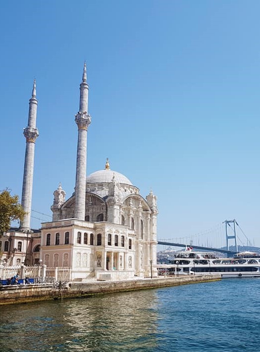 - Finamente, visita la Mezquita Ortaköy (Ortaköy Camii). Pequeña mezquita imperial de estilo barroco del siglo XIX, situada junto al Bósforo y el puente del mismo nombre. Su ubicación la hace una de las más fotogénicas de Estambul. Este mezquita se puede visitar también antes de ir a Bebek ya que esta mas cerca de Dolmabahce, sin embargo verlo de noche puede ser un lindo espectáculo.