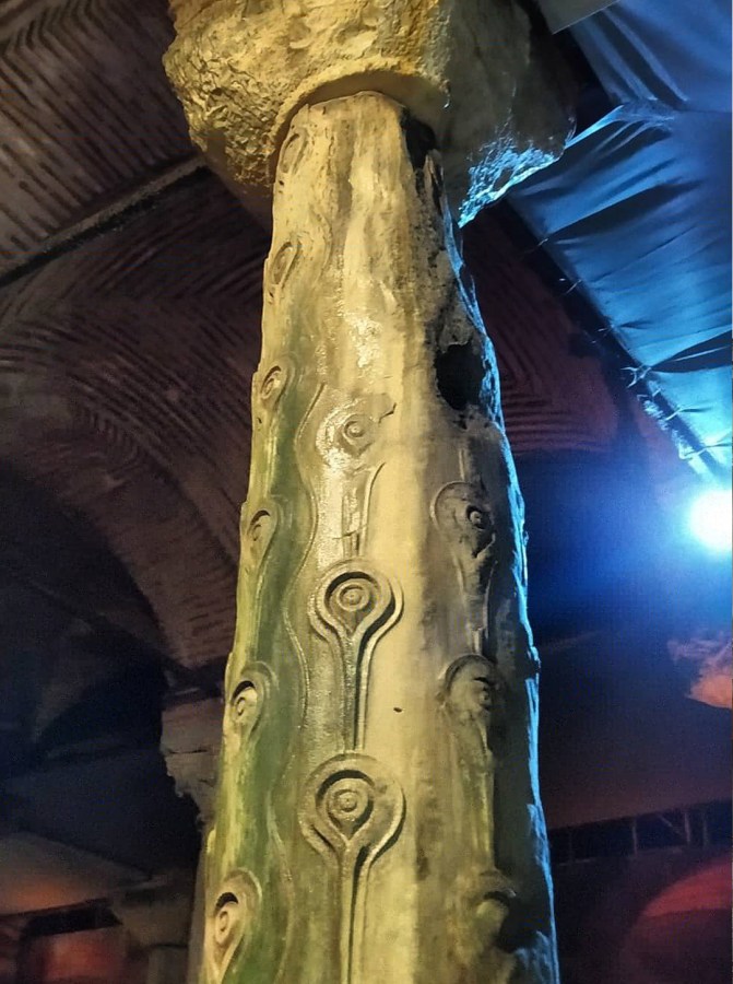 - Ingresa a la Cisterna Basílica (Yerebatan Sarnıcı). Un Antiguo depósito de agua subterráneo del siglo VI, con 336 columnas impresionantes y un ambiente misterioso iluminado tenuemente. Destacan las famosas cabezas de Medusa talladas en dos de sus bases.