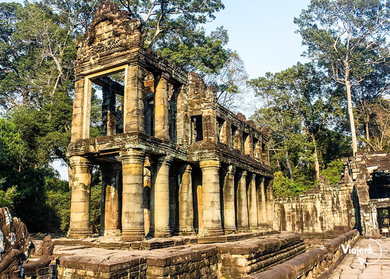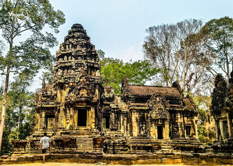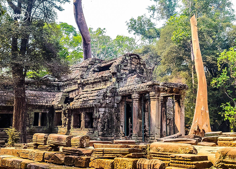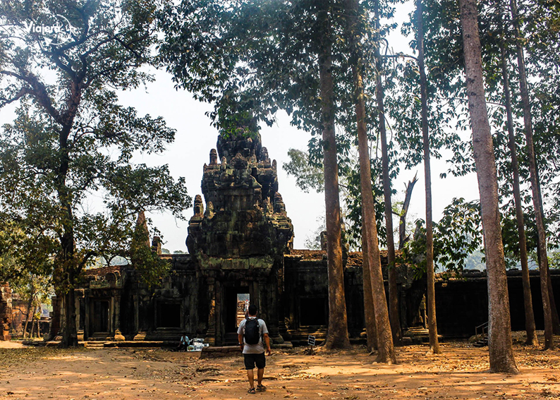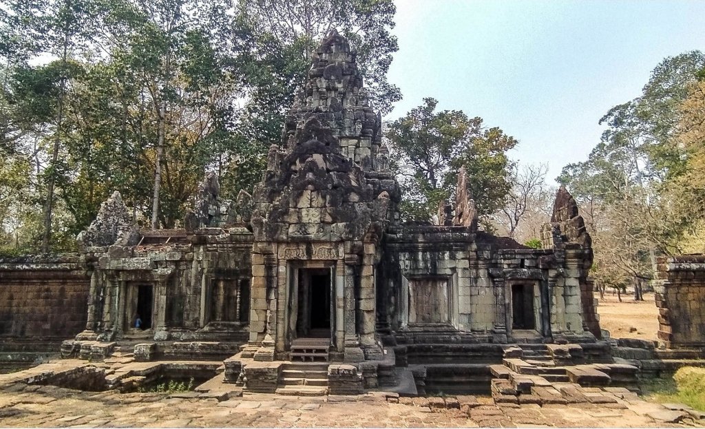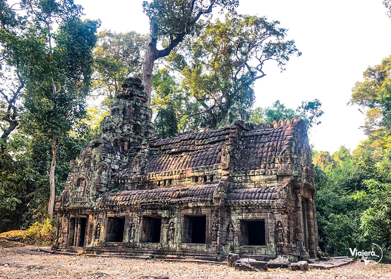 Construido a finales del siglo XII para el rey Jayavarman VII, es pequeño y se encuentra al noreste de Angkor Thom . Una de sus principales atractivos es un árbol centenario que estrangula por completo una torre de entrada al templo.