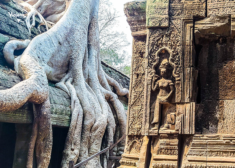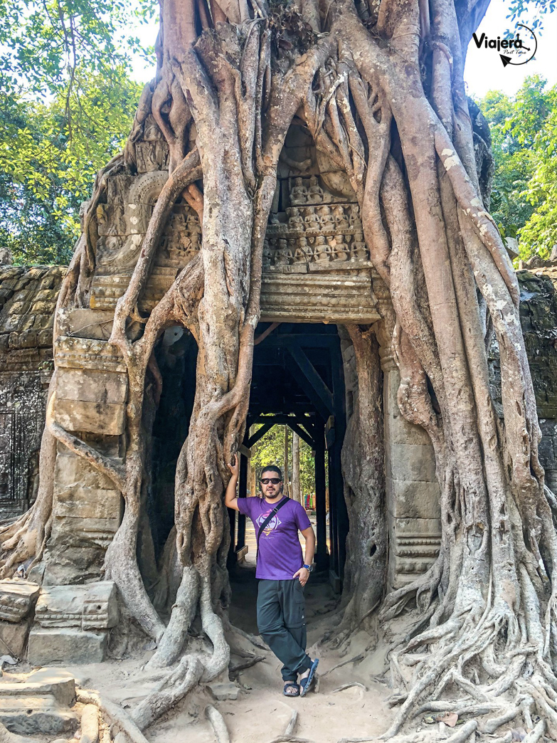 Este increible templo es uno de los favoritos de los visitantes y también el nuestro. Aquí se puede apreciar como la naturaleza ha tomado de regreso lo que le pertenece y encontrarás enormes arboles abrazando los restos de las edificaciones. Este templo es muy visitado también porque aquí se grabaron algunas de las escenas de la pelicula Tomb Raider.