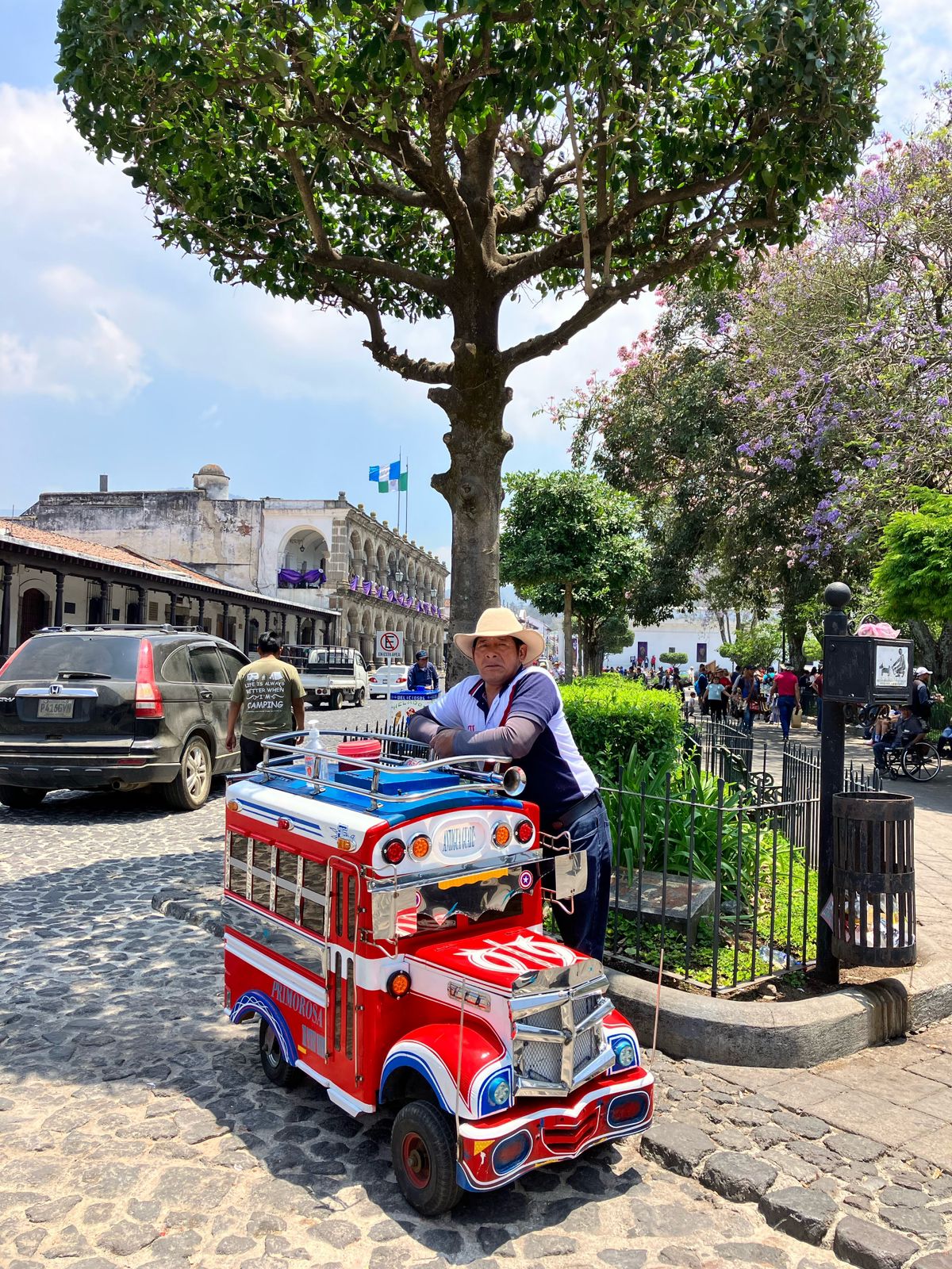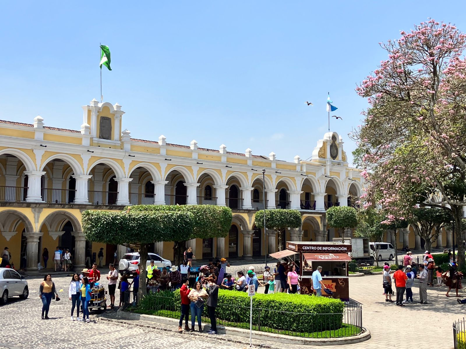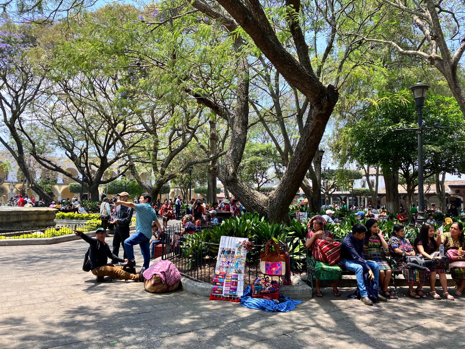 El parque central de Antigua es como la gran mayoría de plazas centrales de las ciudades Latinoamérica de estilo colonial, cuenta con su catedral, su municipio y otras edificaciones enmarcadas por columnas en forma de arco. En la plaza se congrega gran cantidad de personas entre locales y turistas y por supuesto hay mucho comercio. En la plaza esta también el ChocoMuseo para los amantes de este manjar.