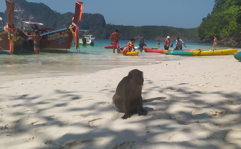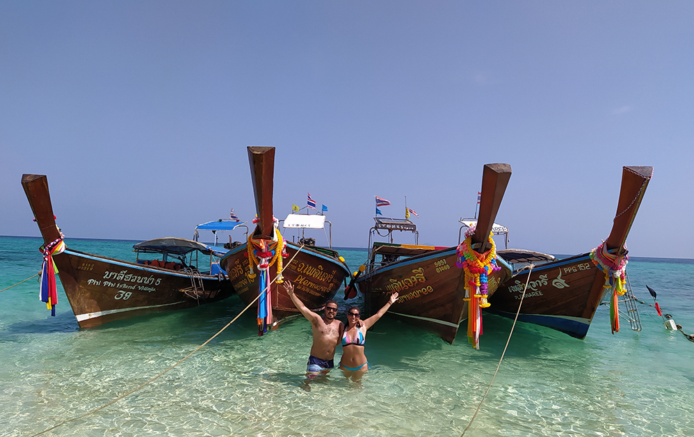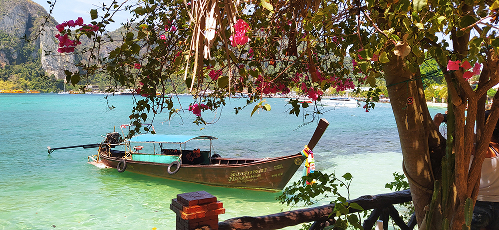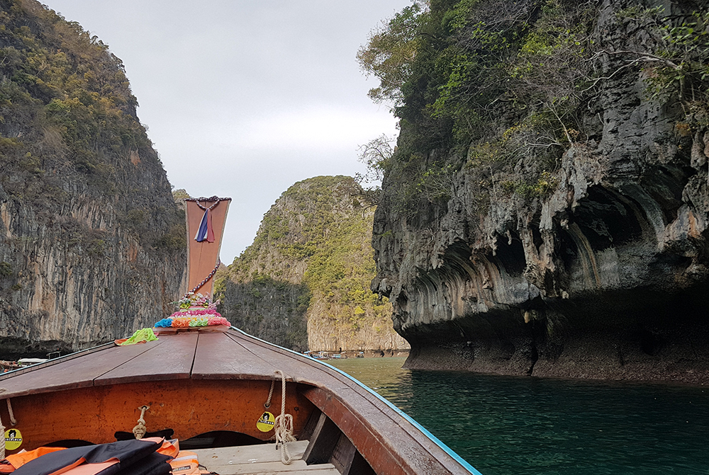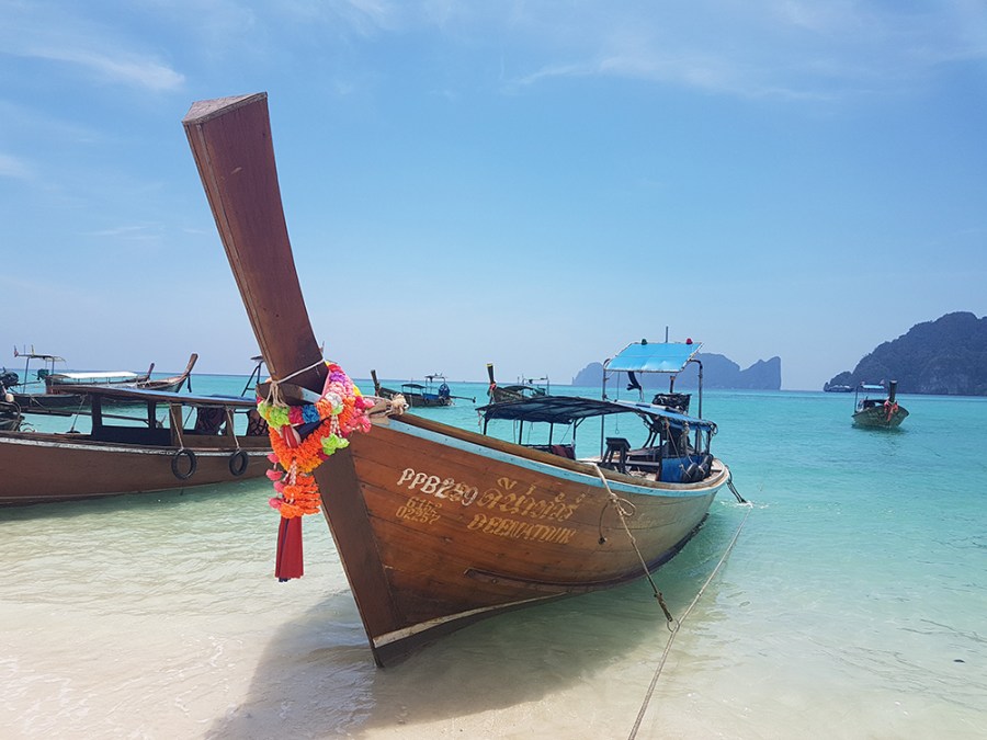 En este paseo en long tail boat , el tradicional bote tailandés, visitamos varios puntos en Phi Phi Don como: Monkey Beach, llena de monos de cola larga y Nui Bay, bahía protegida por acantilados. En Phi Phi Lee visitamos Maya Bay, la playa de la película de Leonardo DiCaprio que en aquel entonces solo la pudimos ver desde el mar ya que el ingreso estaba prohibido debido a la recuperación del coral; la cueva del Vikingo, lugar protegido que debe su nombre a las diferentes pinturas encontradas en sus paredes, que representaban barcos, elefantes, lanchas, y veleros y Pileh Lagoon, una bahía con forma de laguna rodeada de impresionantes acantilados.