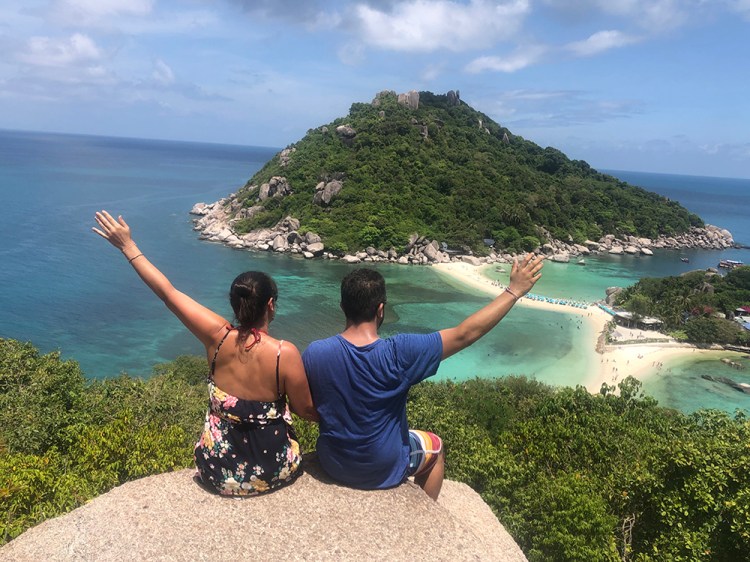 También reservamos otro día para conocer el famosísimo y espectacular archipiélago de Koh Nang Yuan, compuesto por 3 islotes conectados por un banco de arena. Este lugar, queda a solo 15 min en bote desde la isla koh Tao y realmente es un imperdible en la zona. Aquí se puede disfrutar del mar cristalino y hacer una caminata a su mirador desde donde tendrán las más increíbles y memorables fotos de Tailandia.