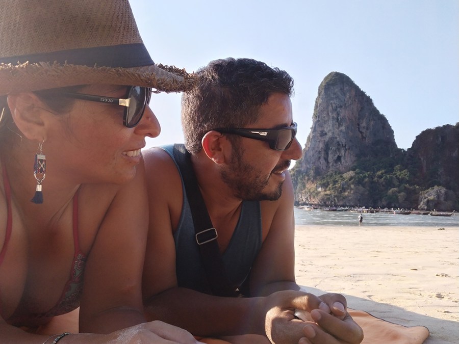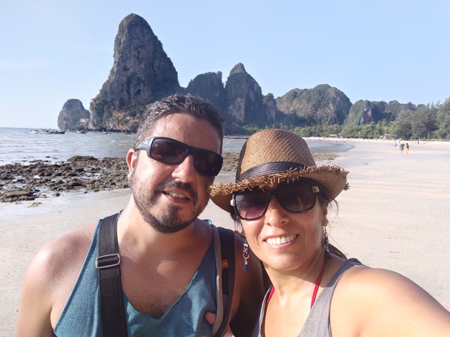 Ao Nang se encuentra en la provincia de Krabi y es uno de los puntos de partida para visitar las famosas islas Phi Phi. Para llegar aquí viajamos desde Koh Tao en Ferry hasta Surat Thani y luego nos recogió un Shuttle que nos llevó hasta el centro turístico de Krabi. Nuestro principal propósito evidentemente era llegar hasta Phi Phi, pero como teníamos tiempo decidimos hacer una pequeña parada para conocer las playas de Railay, accesibles solo en barco, habíamos visto muchas fotos de sus acantilados de piedra caliza y arenas blancas que crean un escenario idílico y supimos que debíamos conocerla. Fue muy poco el tiempo que pudimos estar aquí y llegamos en marea baja por lo que no fue lo mejor, pero de todas maneras lo disfrutamos muchísimo.