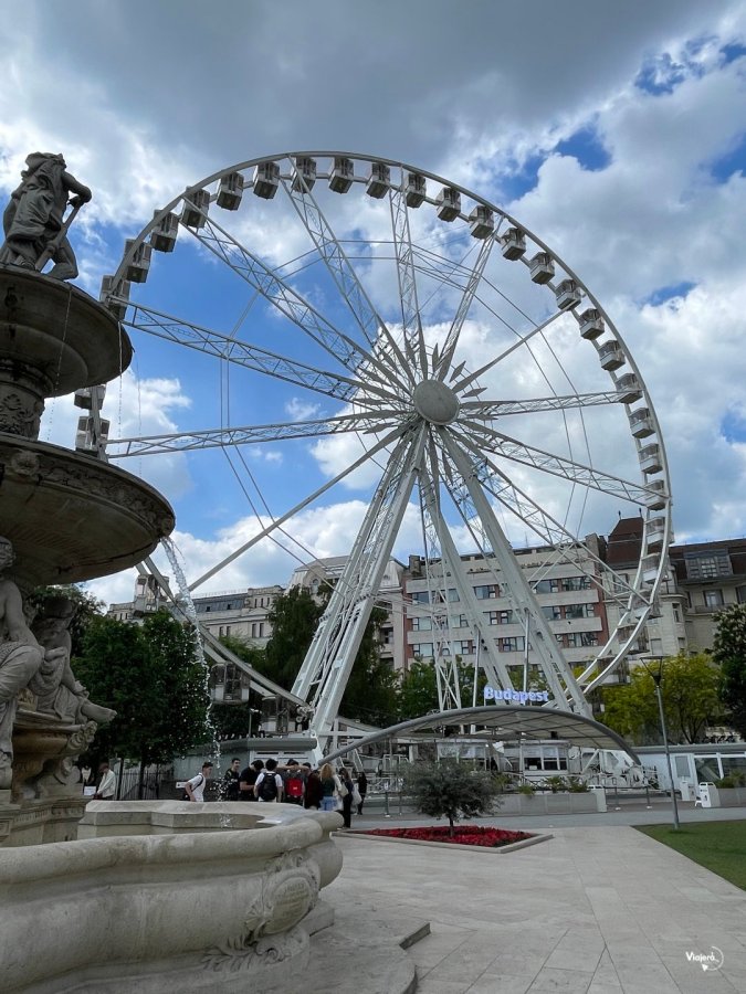 Plaza Erzsébet: Es un buen punto de partida si están alojados en el centro. La plaza es moderna y vibrante, con zonas verdes, una noria (Budapest Eye) y cafés donde tomar algo antes de comenzar el recorrido.