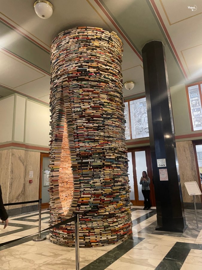 Este día ustedes podrían cerrar la tarde visitando la Bibliotenca Klementinum, que nosotros visitamos el 3er día, y la Librería municipal donde verán una larguísima fila de personas que buscan una foto con el poso de libros con efecto infinito que hay en la entrada. Lucien y yo soy muy negados a hacer filas para una foto, así que solo entramos al baño, yo tomé una foto del poso y nos fuimos.