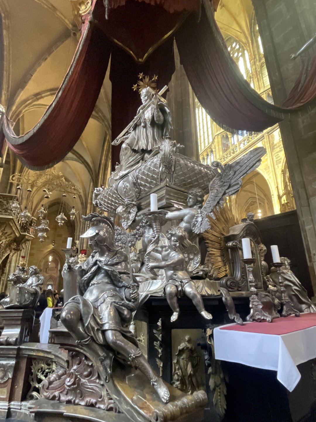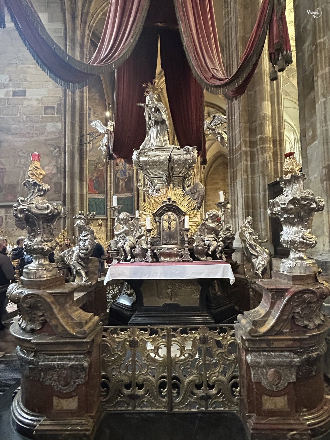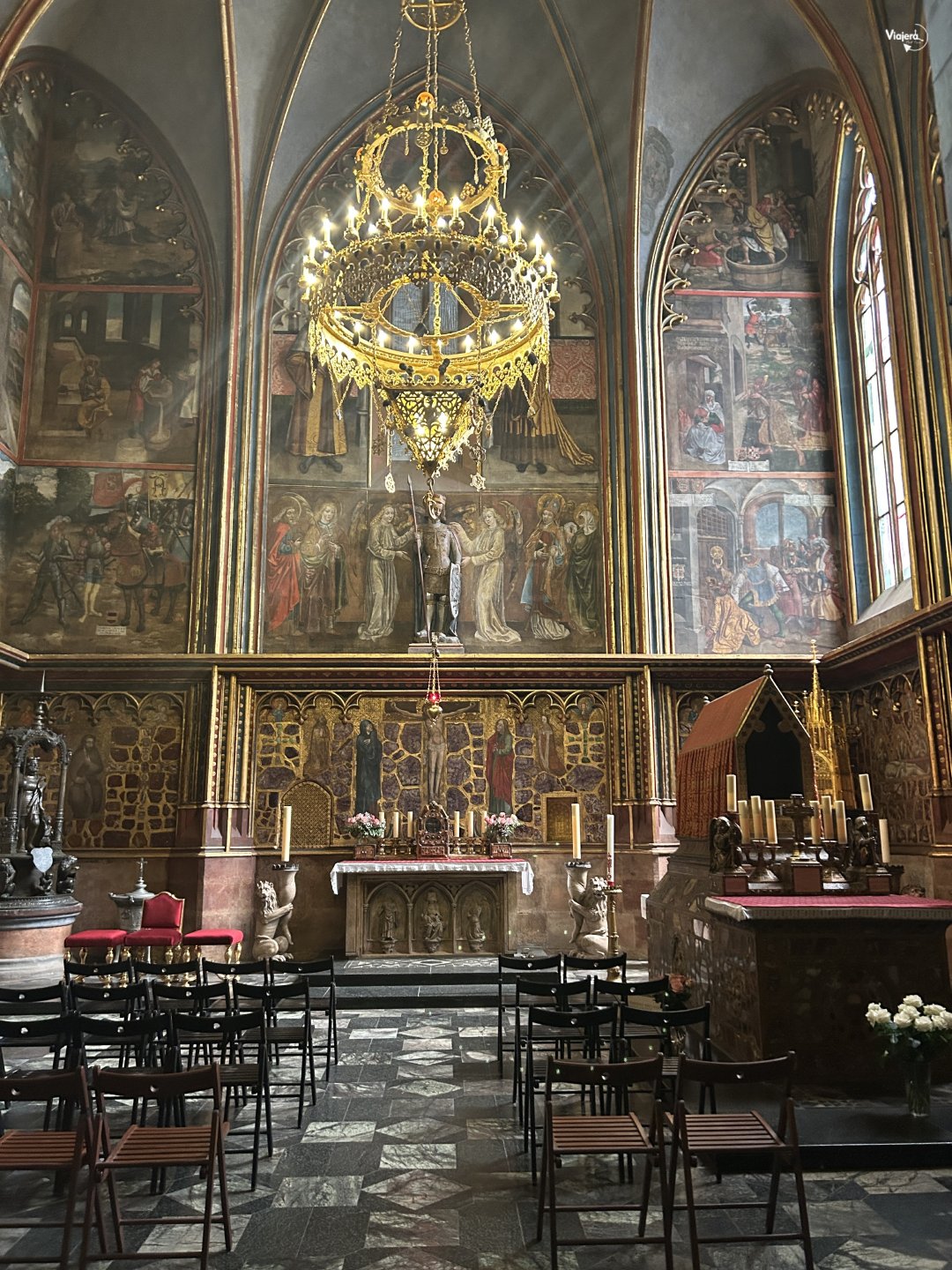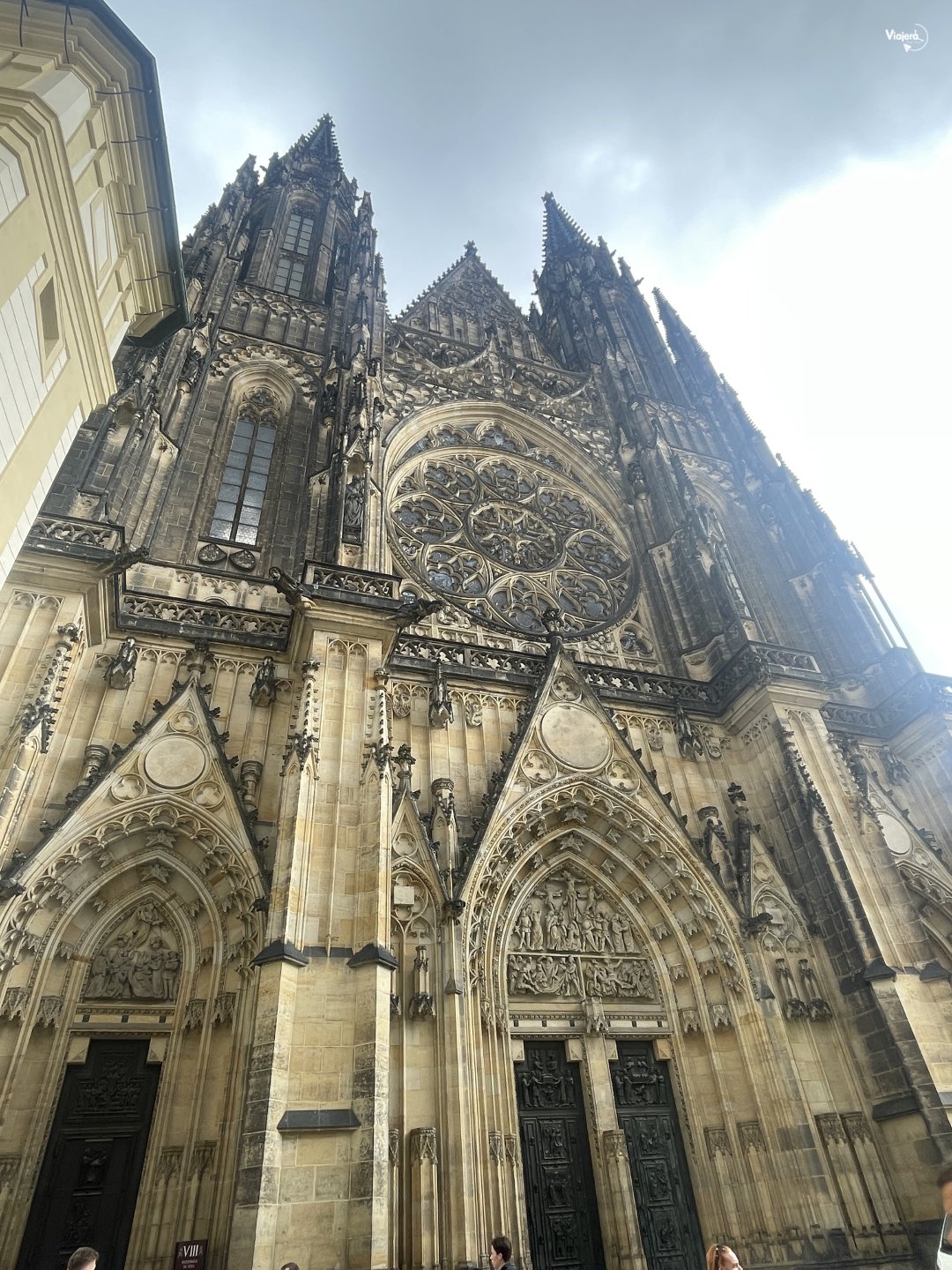 En nuestro último día en Praga, nosotros teníamos un pendiente: La Catedrál de St Vitus. Así que volvimos hacia el castillo de Praga y entramos a maravillarnos con este recinto imponente que es uno de las catedrales mas imponentes de Europa. Su arquitectura, que tiene más de 7 siglos, es gótica pero también cuenta con elementos renacentistas y barrocos. Los elementos que más llaman la atención en la catedral son sus dos torres de más de 80 metros de alto, el rosetón central y el altísimo campanario de estilo renacentista.