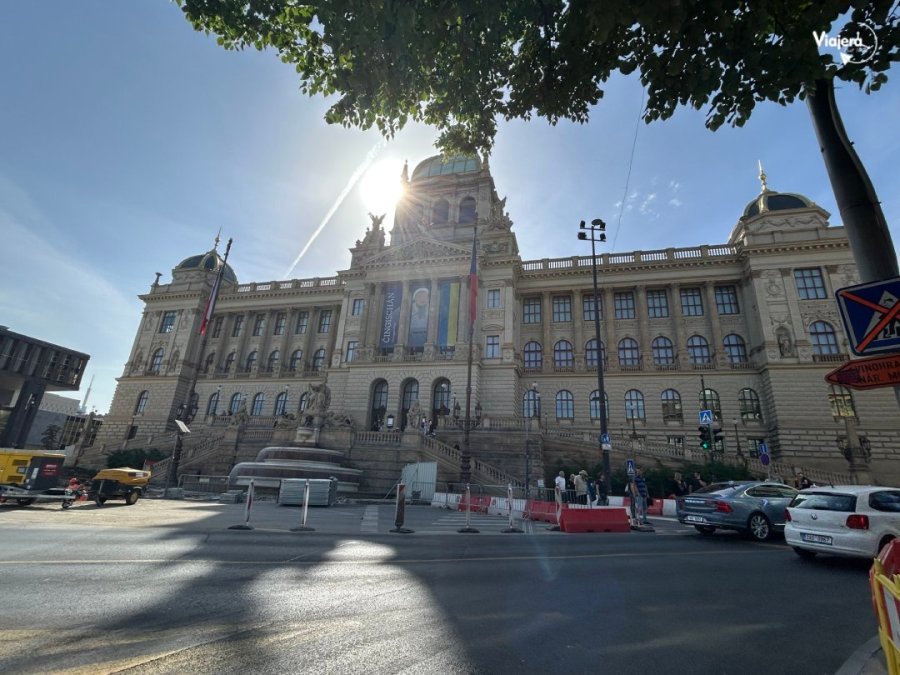 De camino entre la cabeza de Kafka y la torre de la Pólvora hay unos 12 minutos, pero como teníamos más o menos una hora para la apertura aprovechamos para pasar por fuera del imponente Museo Nacional, ubicado en la plaza Václavské y la colorida Sinagoga de Jerusalén.