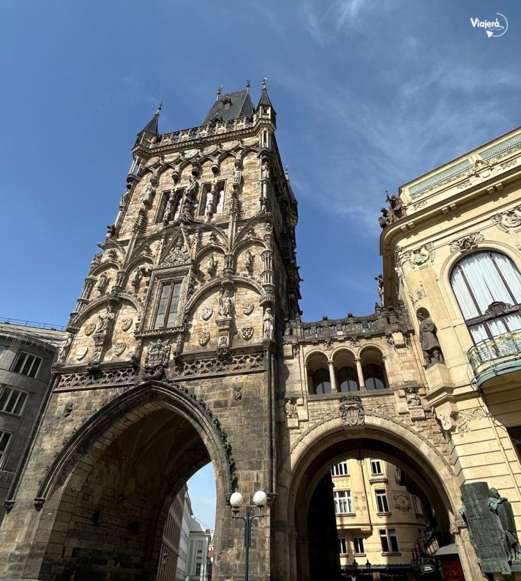 Torre de la Pólvora. Esta es una de las puertas de la ciudad que data del S. XV y conduce a la ciudad vieja. Hay muchas torres a las que se puede subir en Praga: las que están a los lados del puente de Carlos, la torre del reloj astronómico, entre otra. nosotros decidimos subir a esta ya que es uno de los monumentos mas representativos de la ciudad y tiene unas vistas espectaculares del centro histórico.