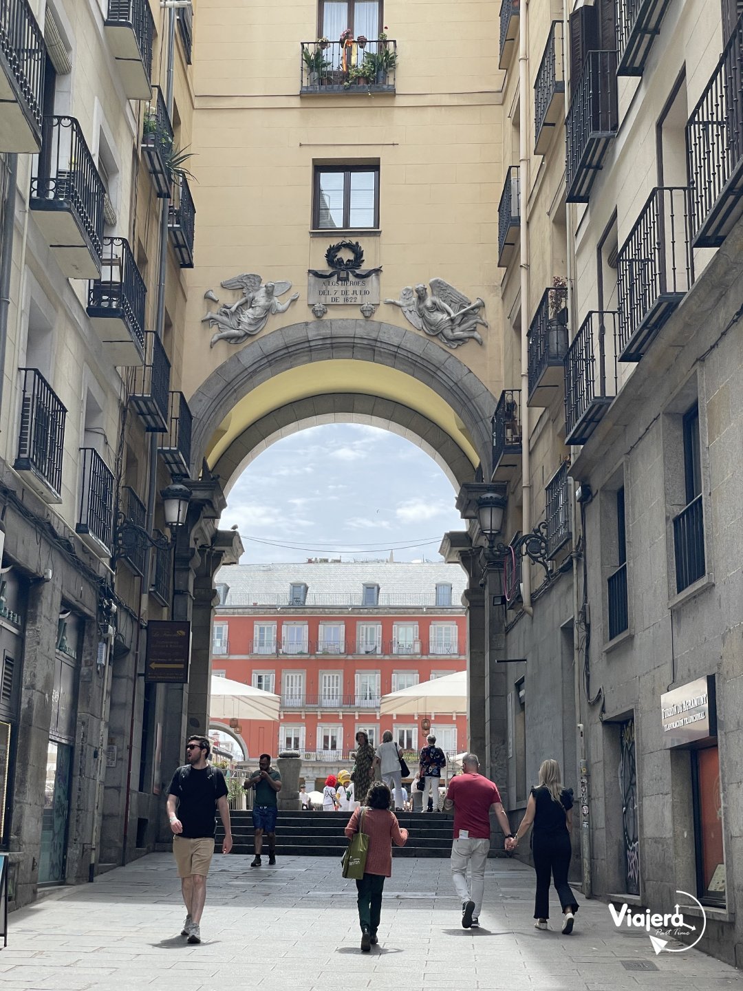 A pocos metros de Puerta del Sol, caminando por la calle Mayor, se encuentra la Plaza Mayor. Es una joya del siglo XVII, rodeada de edificios uniformes con galerías porticadas, ha sido escenario de mercados, ceremonias y eventos históricos. De hecho, cuando llegamos estaban preparando todo para un concierto por las fiestas de San Isidro (no soy de conciertos, yo solo estaba renegando porque los andamios no me dejaban disfrutar del espectacular lugar).