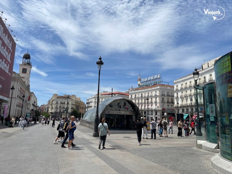 La Puerta del Sol es uno de los lugares más emblemáticos de Madrid y punto de encuentro para locales y turistas. Es un espacio lleno de movimiento, con edificios históricos, tiendas y el bullicio característico del centro. Esta plaza es el escenario principal de reuniones de los madrileños y también de manifestaciones. A fin de año, en esta plaza, suenan las 12 campanadas del reloj de la Casa de Correos, esto sucede sin falta cada año desde 1962.